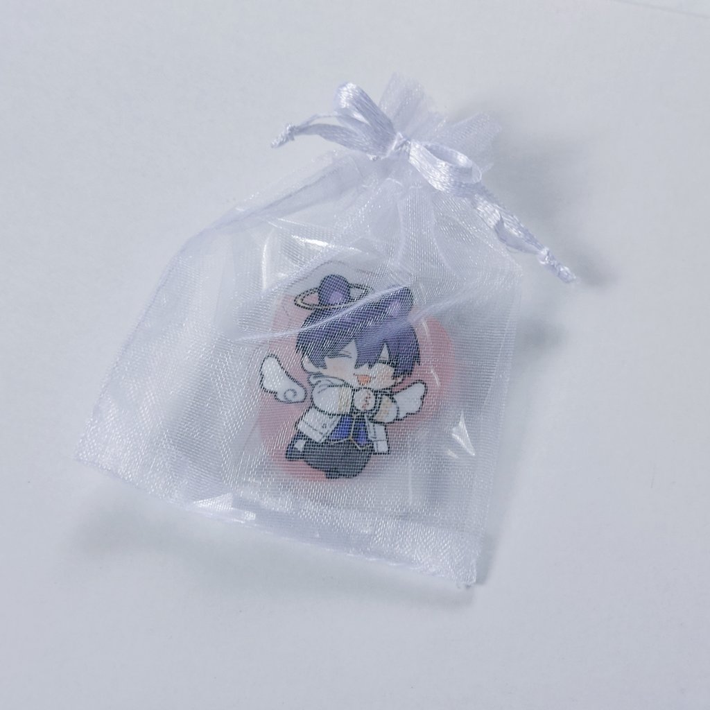 これは グッズ類こんな感じで頒布しますという参考写真です。パッケージググッたら出てきて かわいい!と思って用意したんだけど思ったよりリボンが短く華奢で結ぶのが大変だった。のでリボン結びは諦めてる。無理だこんなのは。ぽやしみなさい。