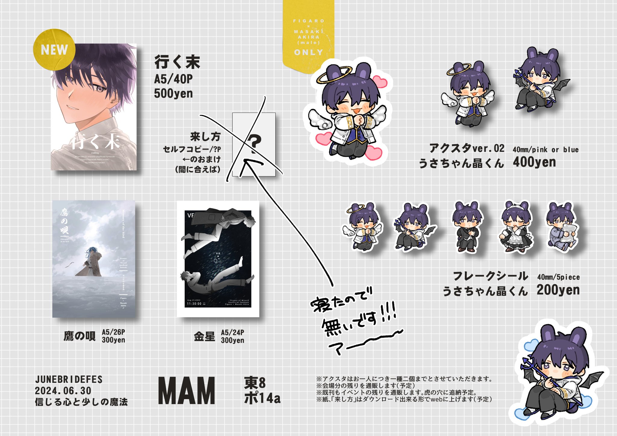 金星が虎にまだしっかり残部あるので、次回のイベント参加時に持ち込む予定です。次回未定ですが2月か七夕のフィガ晶♂オンリー出れたら嬉しい。